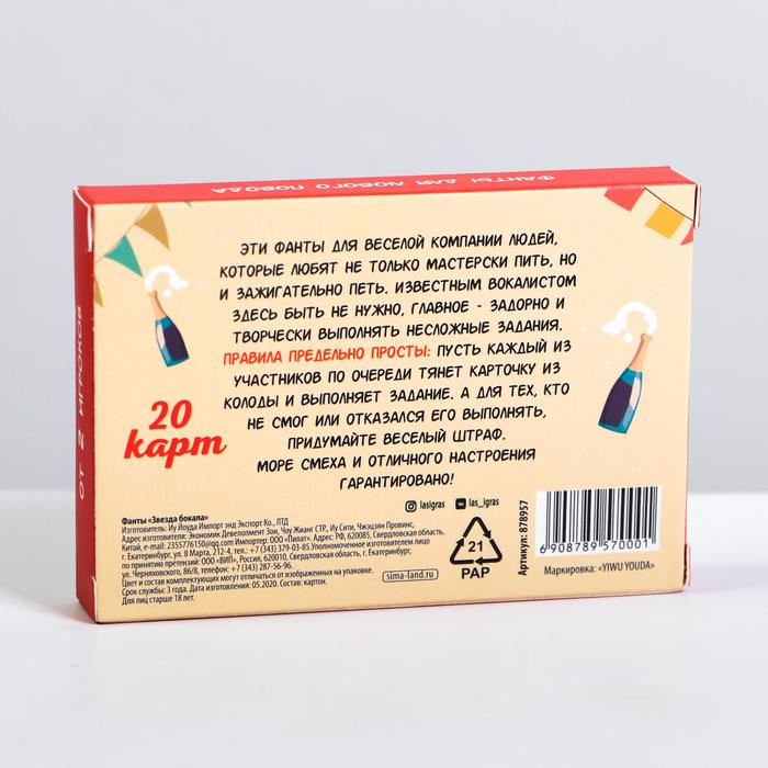 Купить игра для компании "фанты звезда бокала" 20 карт от 120 руб. с доставкой до пункта выдачи в Ногинске. Интернет магазин ДекаМаркет. Оплата при получении.